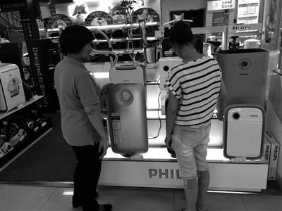 杭州某家电卖场内,消费者正在咨询空气净化器。