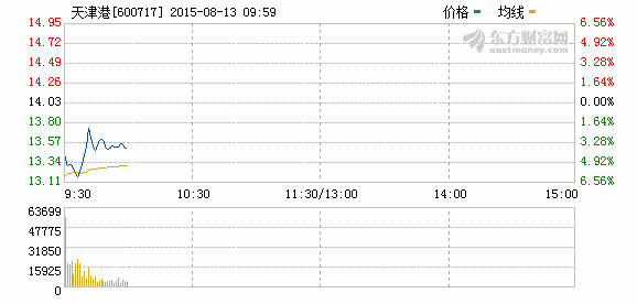 受到昨夜天津市滨海新区天津港一危险品集装箱堆场起火爆炸,造成建筑物、居民楼受损及人员伤亡的影响,天津港(600717.SH)今日大幅大幅低开,开盘报13.13元,跌幅为6.41%。