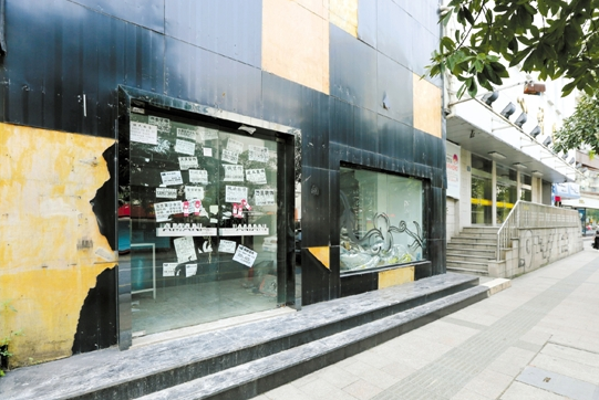 辗转联系到其中一家空置商铺的房东翟先生。“我这房子已经空了有半年了,没找到合适的租客。本来在门口挂出电话,但很多都是骚扰电话,我就把电话信息撤掉了。”翟先生沮丧地说,这两年,他的商铺换过很多商家,有小饰品店、小吃店、美甲店,但都因为生意不好搬走了。“我这个52平方米的小铺子,很多小吃店想来租,但是我不想把房租降太低,毕竟当初也是个黄金商铺。这两天又有一个在谈,再空下去也不是办法,打算降点房租。”