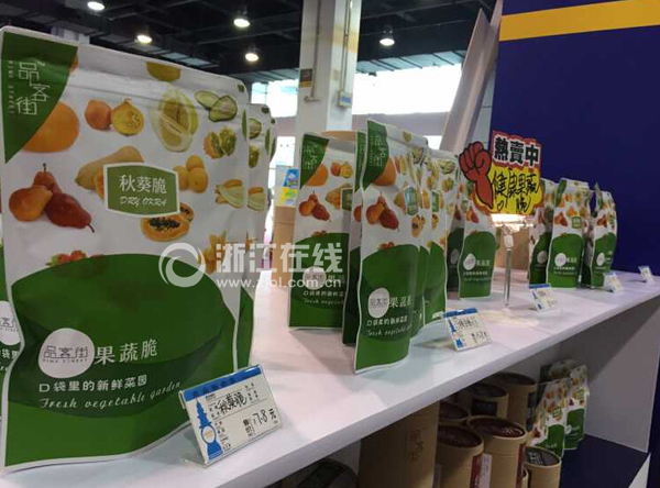 在产品展示区,红豆薏仁粉、核桃芝麻桑葚粉等五谷养生粉吸引了不少客人的目光,豌豆脆、南瓜脆、秋葵脆等健康试吃品也让不少小朋友流连忘返,此外,澳大利亚奶粉、新西兰蜂蜜等也吸引了年轻爸妈的驻足……