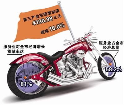 具体来看,杭州高增长离不开服务业的“引爆”作用。前三季度,服务业经济比重继续提高,占全市经济总量的58.2%,比上年同期提高4.3个百分点,对全市经济增长贡献率达81%,有力地支撑了我市经济两位数增长。