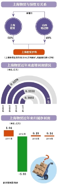山西明迈特除是上海物贸租赁的仓库责任方外,还是其经营合作伙伴。在此次存货缺失中损失最大的上海物贸炉料,是上海物贸与山西明迈特的合资公司。其中上海物贸持有51%股权,山西明迈特持有49%股权。