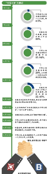 同一日有消息称,通过这几日的“拜票”,王石已从某央企处获得200亿元支持;另外,一家信托公司愿为王石提供100亿元资金。王石所筹集资金总额已超过300亿元,已能与宝能系一战。