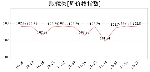 眼镜类本周价格指数为102.8点,走势平稳。年关将近,眼镜行业整体行情以稳为主,少量商品表现亮眼。随着圣诞、元旦双节来临,派对型眼镜订单上升较快,以周边国家出口及国内备货为主;滑雪类眼镜较为畅销,以欧美客商下单为主;近视眼镜采购旺季主要集中在开学前后,近期以少量补货为主;太阳眼镜、泳镜、潜水镜等产品季节性明显,近期东南亚客户有少量备货。