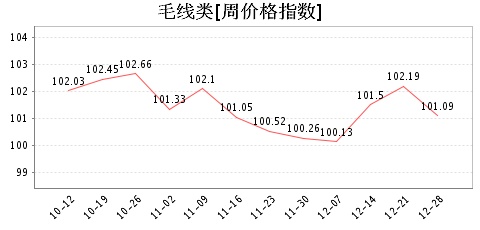 毛线类本周价格指数为101.09点,调整回落。受国内各地气温走低影响,毛线行业近期销量明显上升。内销方面,时尚保暖的牛奶棉线、兔绒线、全羊毛线等产品受到年轻女性欢迎;用于编织围巾的螺旋色丝光线受到各地游客喜爱,需求看好。外销方面,采用国际顶级超绒纺纱工艺制成、手感轻柔松软的高档晴纶毛线畅销日韩等地。