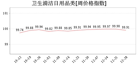 卫生清洁日用品类本周价格指数为99.91点,微幅下调。临近年关,卫生清洁日用品类产品销售趋旺。内贸方面,拖把、畚箕、扫帚、垃圾袋、冬季加绒马桶套座圈等产品销势稳健;渐变色沐浴球、高档拉背条、蜂窝形海绵浴擦搓澡巾、韩国免搓连指沐浴手套等沐浴清洁用品畅销各地超市;多层过滤纸口罩、一次性安全卫生口罩销势良好。外贸方面,优质脱脂纱布口罩滤化吸附作用突出,需求旺盛。