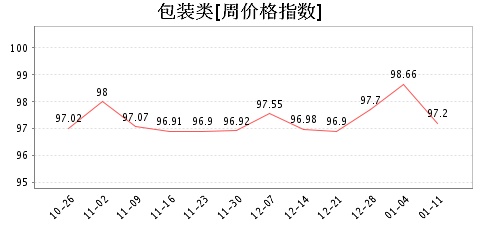 包装类本周价格指数为97.2点,小幅下调。年底将至,节日气氛愈浓,包装行业销势喜人。各种婚庆礼包类包装盒销量突出,国内各地采购商备货积极;年末外贸备货行情表现较好,运输包装类产品需求增旺,纸箱、木箱、麻袋等运输型包装产品销势强劲;瓶类、口红管、润唇管类及化妆盒类等产品外销增量明显,畅销韩国、日本、中东、欧美等地。