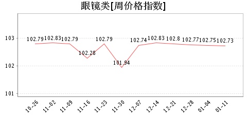 眼镜类本周价格指数为102.73点,走势趋稳。眼镜行业近期整体销势以稳为主。内销方面,近视镜以场内现配销售为主,主要群体为学生;圆形偏光镜、线形偏光镜以及防护镜所占销售比例较小,销势平稳。外销方面,灰色、茶色、咖啡色树脂太阳镜、玻璃太阳镜受到印度、中东等地采购商青睐,销量稳定;泳镜、潜水镜等产品近期以南半球国家采购为主,销量小幅上升。