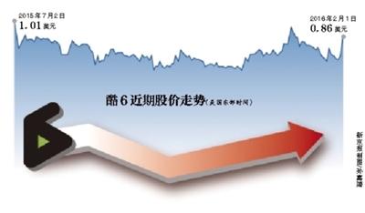 当地时间2月1日,酷6股价报收0.86美元,较前一个交易日上涨22.86%,仍然低于所要求的1美元红线。自2015年7月之后,酷6的股价就再也未能超过1美元。(记者刘夏)