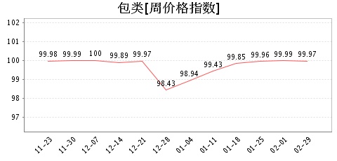 包类本周价格指数为99.97点,微幅下跌。包类行业近期新款全面上市,各地客商采购积极。随着春季旅游旺季来临,旅游包、登山包行情走俏,卡通包、电脑包等普通包类销势平稳;多款亮色系春季时装包受到国内外采购商青睐;随着人们环保意识的增强,各种无纺布袋需求不断扩大,后市看好。