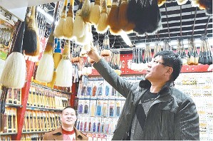 中国义乌网3月1日讯(义乌商报记者 骆贤政)随着学校对书法、绘画的日益重视,书画名家进校园、书画社的涌现,使市场上“文房四宝”销售明显升温,同比增幅稳步放大。