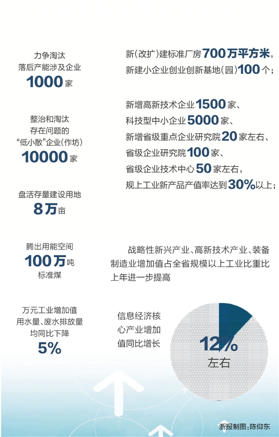 狠抓“换鸟”提质。利用腾出的发展空间,构筑一批区位优势明显、产业配套齐全、高端要素集聚的大平台,着力建设一批创新要素集聚、产业特色鲜明的制造特色小镇,培育发展七大新兴主导产业,建成一批有较强竞争力的国家级和省级新型工业化产业示范基地。鼓励企业通过技术改造、兼并重组等方式实现就地“换鸟”,推动科技型中小企业加强创业创新实现“育鸟孵鸟”,引进世界500强为代表的高端外资项目、央企为代表的重大国资项目、浙商为代表的优质民资项目实现精准“引鸟”。
