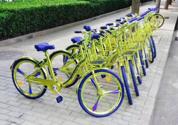 ●今年5月初,酷奇单车进入杭州市场,最早是绿色车身蓝色座椅的轻畅版,6月初推出“土豪金”版本,在功能上还多了个充电装置,可以一边骑车一边给手机充电。