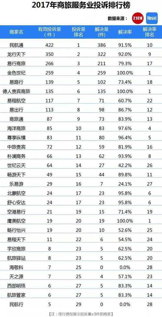 2017年商旅服务业投诉排行榜来源:聚投诉