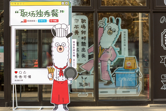 除了社交媒体的内容打造,网易新闻还联合饿了么与汉堡王于12月17日在汉堡王北京环贸店打造了一家网易王三三职场独秀餐厅。在人流密集的办公区中,这家餐厅吸引了白领们的围观与热议。12月19号,另一家网易王三三职场独秀餐厅也将在汉堡王上海118广场店营业。