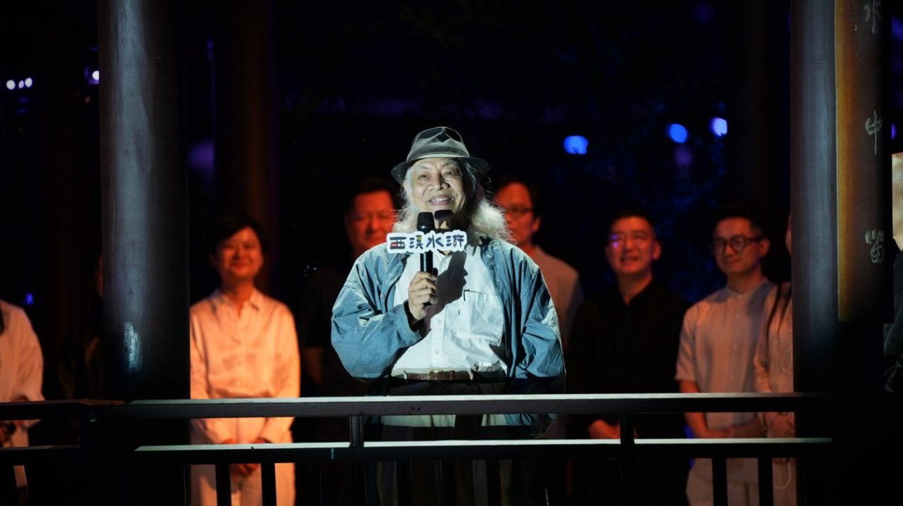 著名漫画家蔡志忠担任《西溪·水浒》新古典沉浸式演出总策划及人物造型总设计,现场揭牌为演出特别绘制的“西溪·水浒”主题logo。“2012年,我在西溪用15天画了108将,这部剧里的人物造型也参照了我画的卡通版《水浒108将》。我希望用水墨线条重构英雄图谱,让经典人物活在当代审美中,进一步发扬水浒文化。”蔡志忠说。