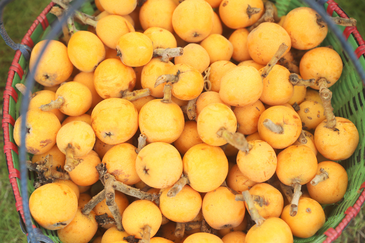 杨梅尚青、桃李未熟,五月中旬的枇杷已将招贤纱帽山村染成一片鎏金。自然成熟的果实香气格外馥郁,果皮覆淡淡麻点,双指并拢轻轻一折即可摘下。撕开表面的果皮,果肉细腻澄黄,嫩如凝脂,送入口中,除了果实本身的清甜,还有一缕残留的阳光热气。