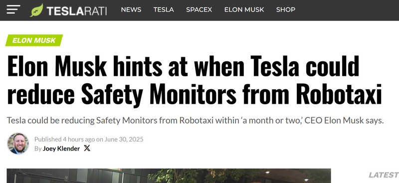 7月1日消息,特斯拉CEO埃隆・马斯克近日表示,该公司的自动驾驶出租车(Robotaxi)可能在未来一两个月内开始逐步减少安全监督员。