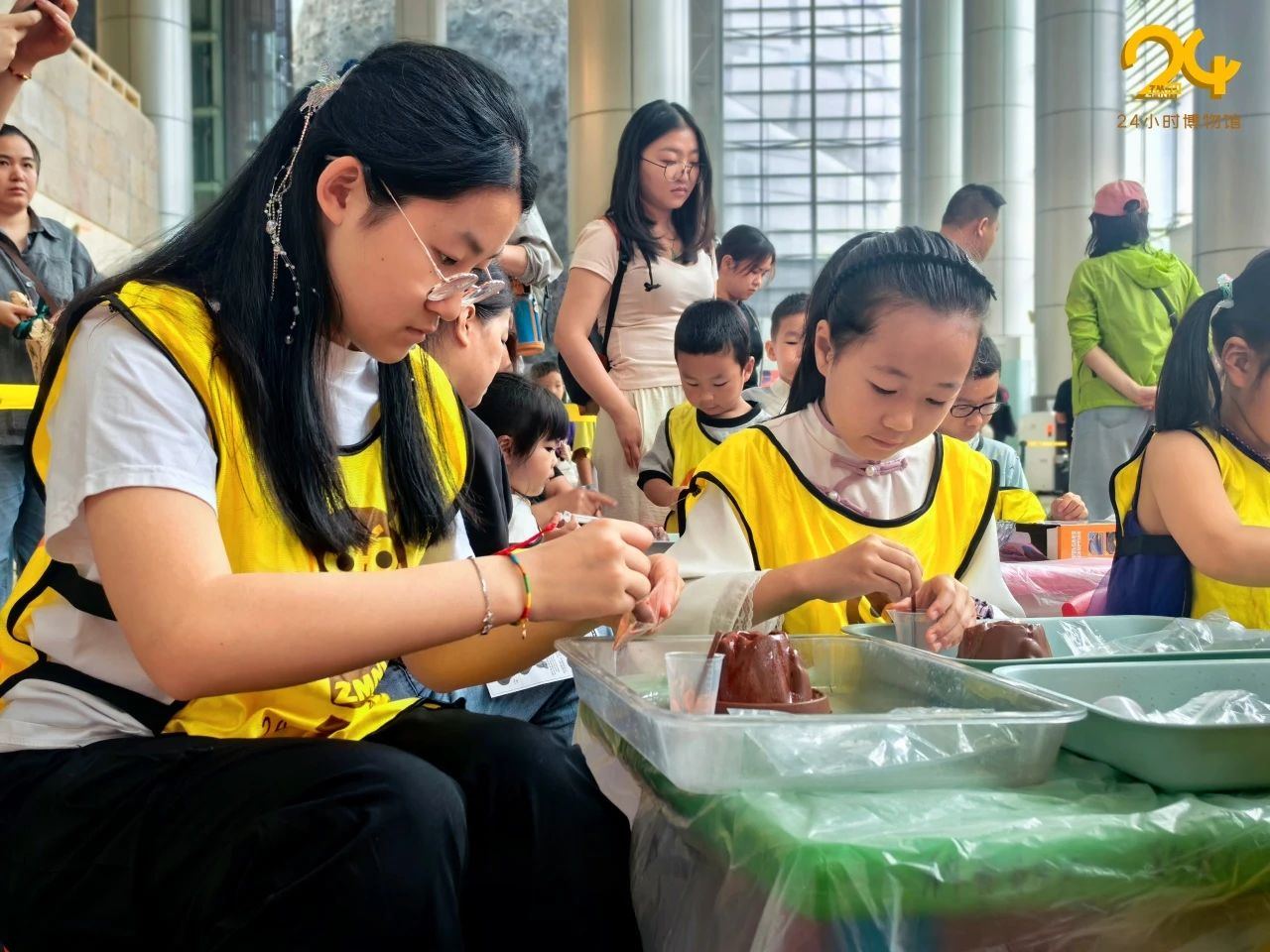 3、“探索恐龙世界”考古课程:模拟考古全过程,用工具层层剥离“岩层”,揭秘“恐龙化石”,培养动手能力与科学思维。