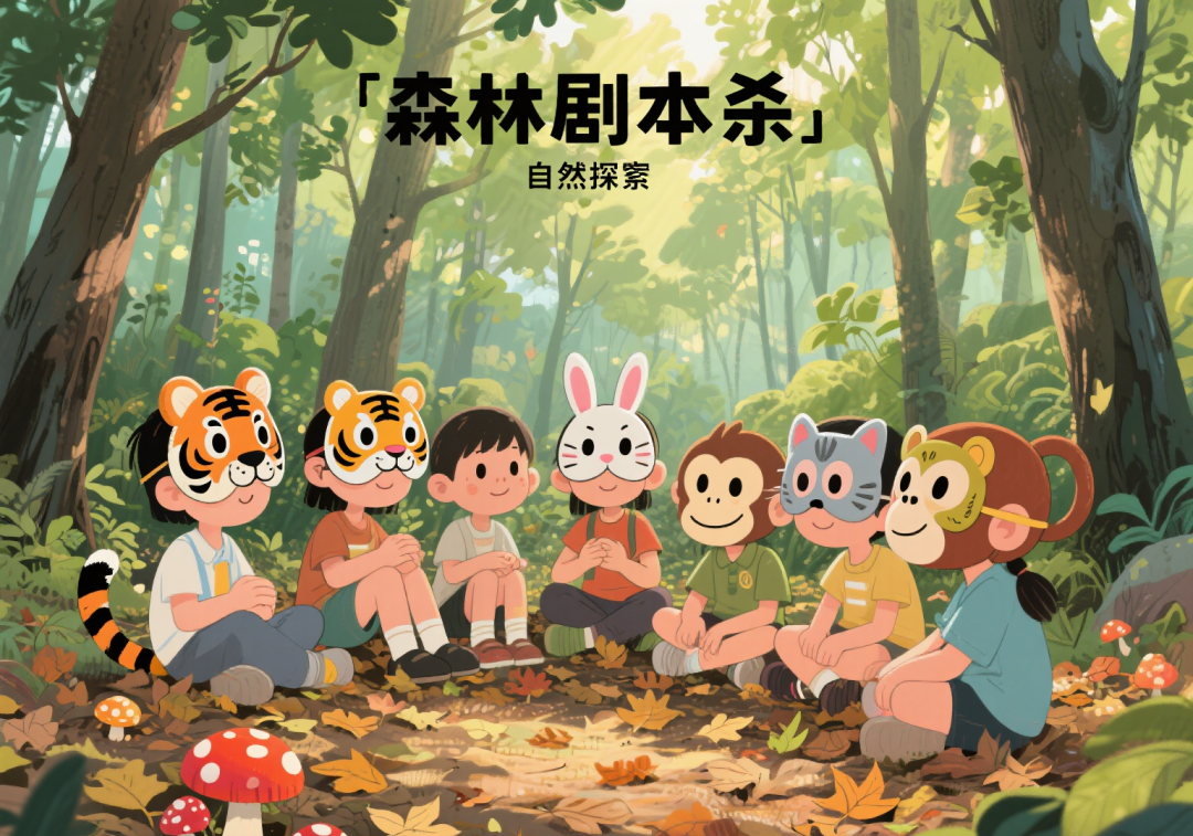 2、森林剧本杀:魔法森林的守护紫水晶突然失踪了!小探险家们化身不同小动物作为的“森林小卫士”,通过自然线索找到丢失的水晶,拯救森林。