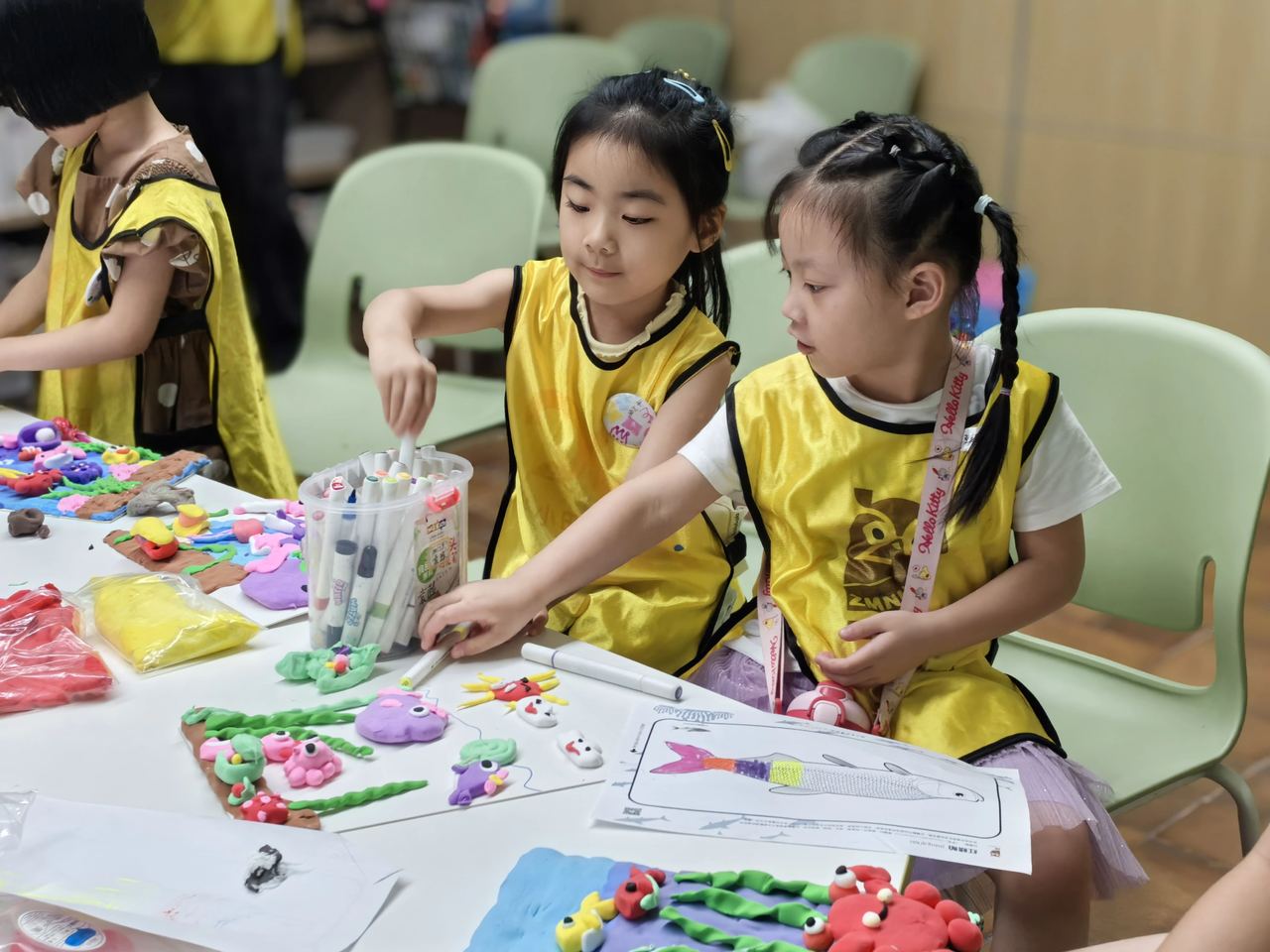 1、“海洋世界”黏土画课程:跟随老师聆听海洋的知识,认识可爱的海底生物,制作一副海洋世界装饰画。