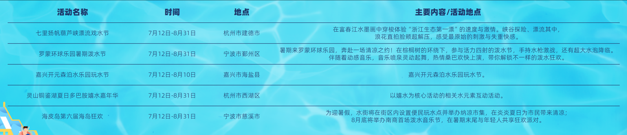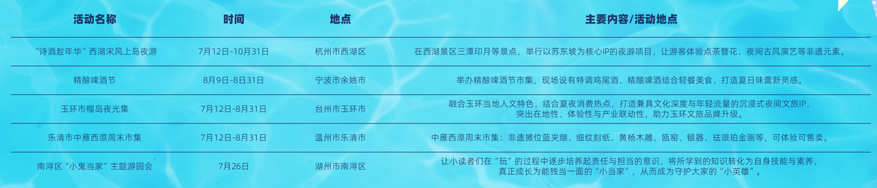 7月12日,浙江启动“缤纷夏日浙里好玩”2025全省暑期文化和旅游消费季,发布了全省暑期十大主题文旅消费场景。