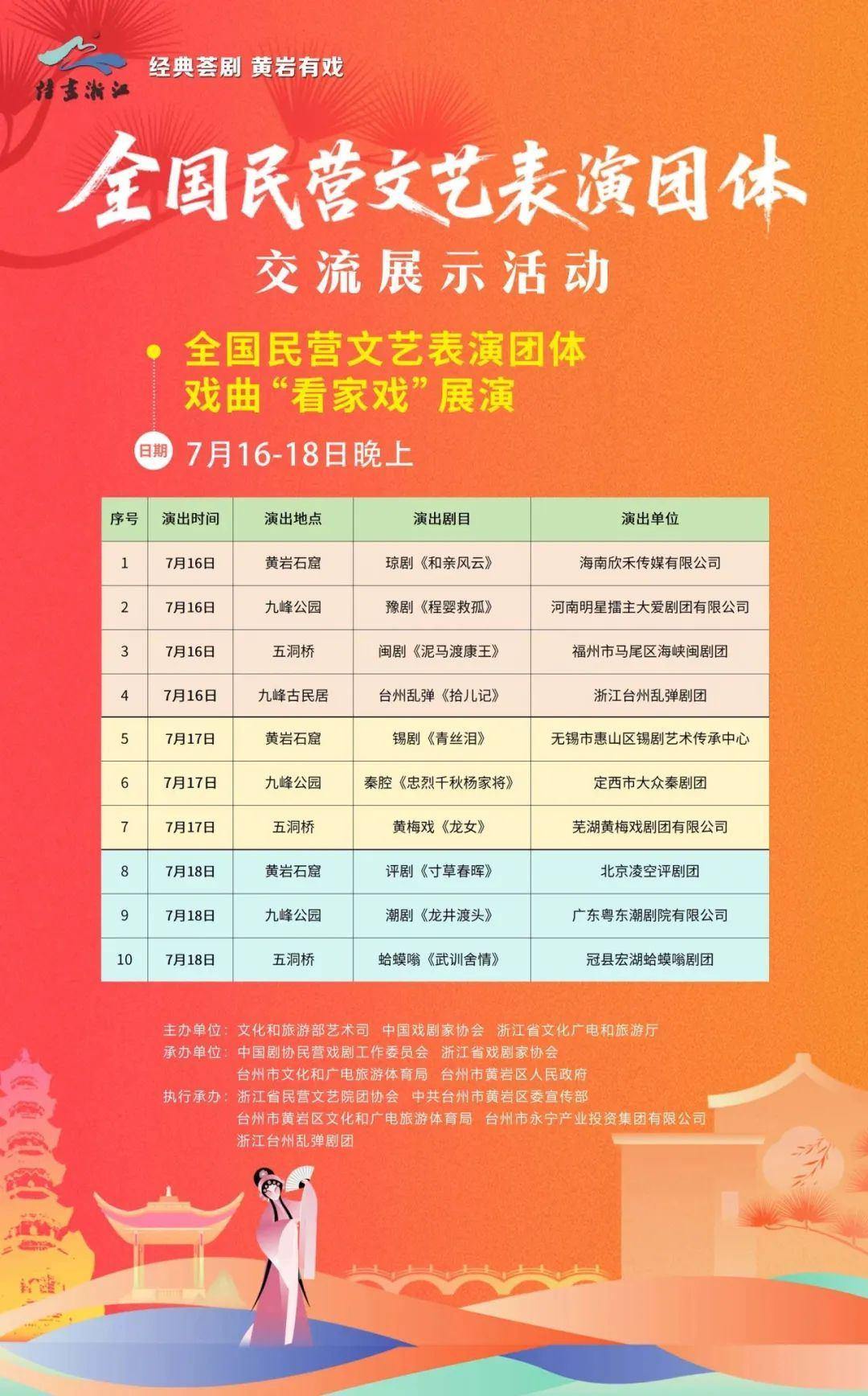 这场以“经典荟剧,黄岩有戏”为主题的文化盛事,由文化和旅游部艺术司、中国戏剧家协会、浙江省文化广电和旅游厅主办。五天时间里,将带来戏曲“看家戏”展演、戏曲精粹专场演出、民营戏剧创作和发展研讨活动及戏曲“妙”会等精彩纷呈的活动,为全国民营文艺表演团体搭建起交流展示的广阔平台。
