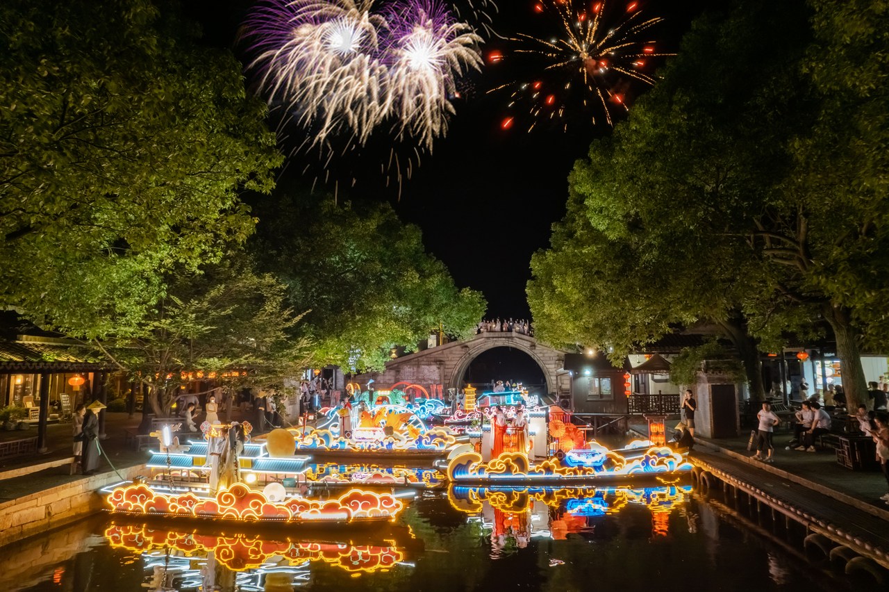 暑期的西塘,花式夜游场景也不可错过。近期,古镇首个江南水乡情景式夜游项目——近期,“梦西塘·船说”创意国风花船巡游第二季正式启航。在演艺内容上,“梦西塘·船说”做了全新升级,将越剧IP、汉服IP以及名人IP更好地融入其中。这个夏天,去古镇打卡,看璀璨水乡星河吧。