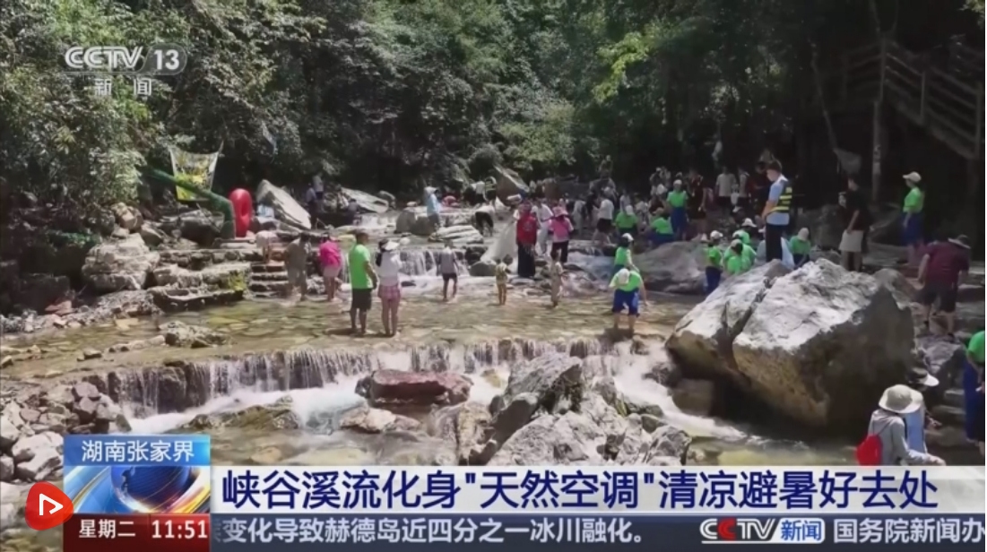 湖南张家界:峡谷溪流化身“天然空调”清凉避暑好去处