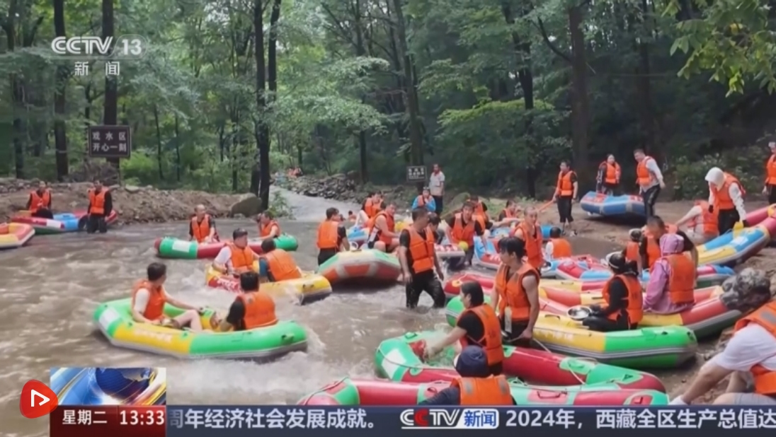 盛夏时节,吉林蛟河市插树岭峡谷漂流迎来高峰。清澈的山涧水、刺激的漂流体验吸引了大批游客前来避暑游玩,带动周边乡村旅游发展。
