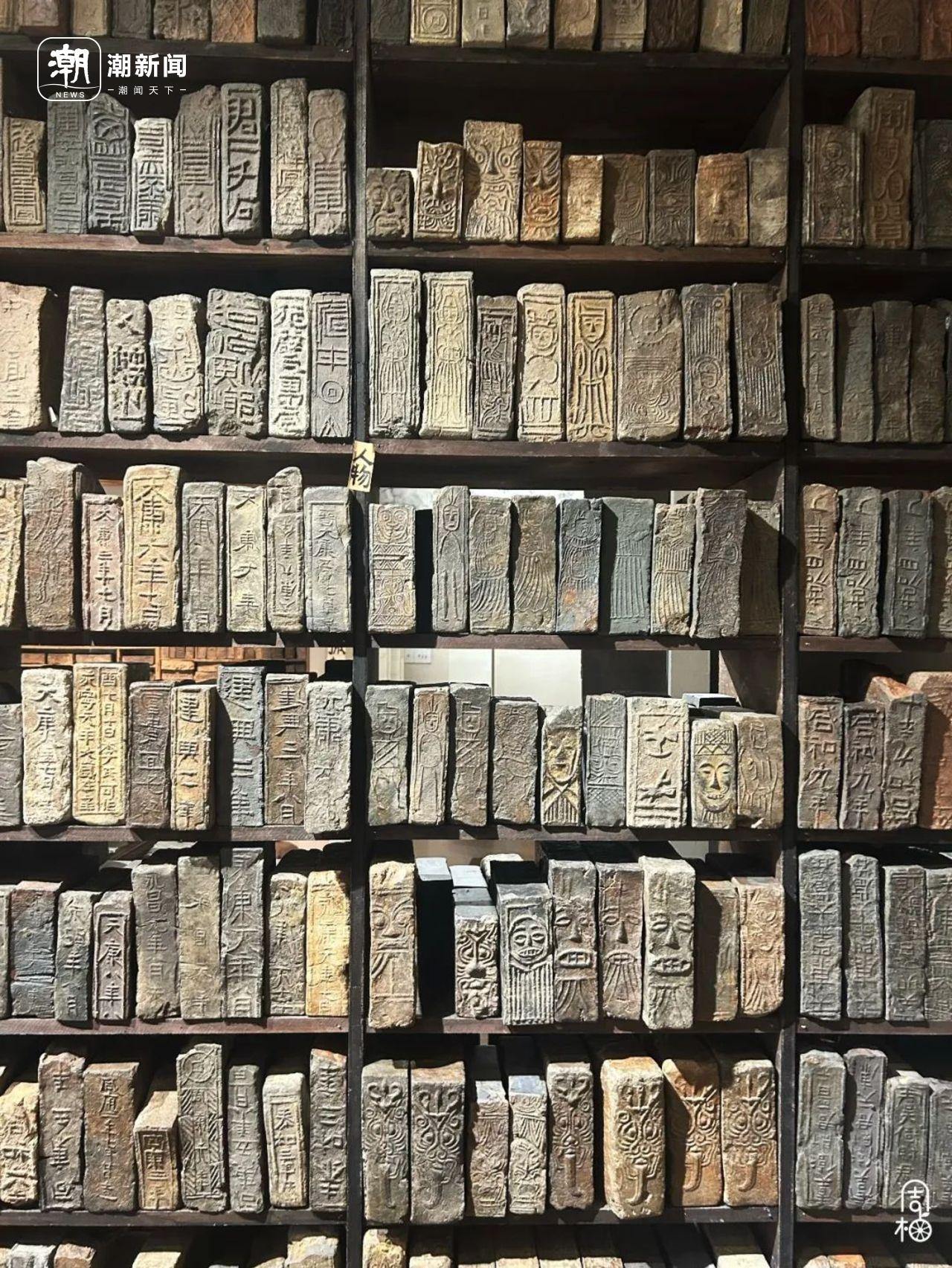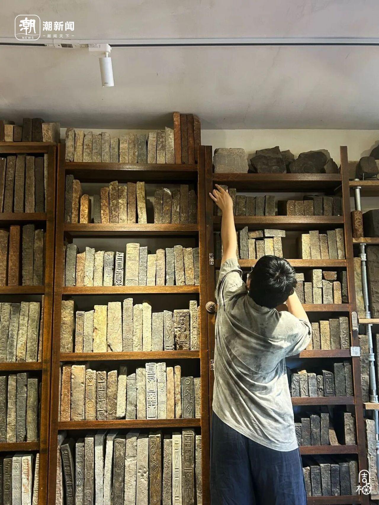 走进“搬砖艺术家”,时间仿佛在这里放慢了脚步,书架上摆放的不是各类古籍,而是用千斤顶支起的沉甸甸古砖,各类带着岁月刻痕的砖块按照鱼纹、瑞兽、纪念、人物的纹样做了摆放分类,就如同来到了一座藏着时光密码的小型历史博物馆。