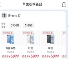 据公开信息显示,iPhone17系列于9月12日正式开启预购,包含iPhone17、iPhone17Pro及iPhone17ProMax等机型,官方定价区间为5999元至17999元。