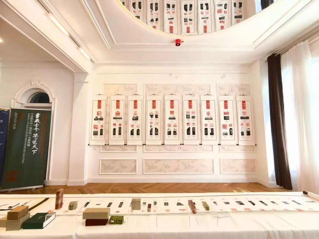活动现场,东方航空布达佩斯营业部负责人介绍了中匈航线服务升级举措,进一步夯实两地互联互通基础;“书藏古今・港通天下”宁波图形印特展同步启幕,展览将宁波舟山港、天一阁等元素与匈牙利链子桥、裴多菲等文化符号融入传统印章艺术,成为“东方的起点”品牌的生动注脚。(本文由宁波市文化广电旅游局供图)
